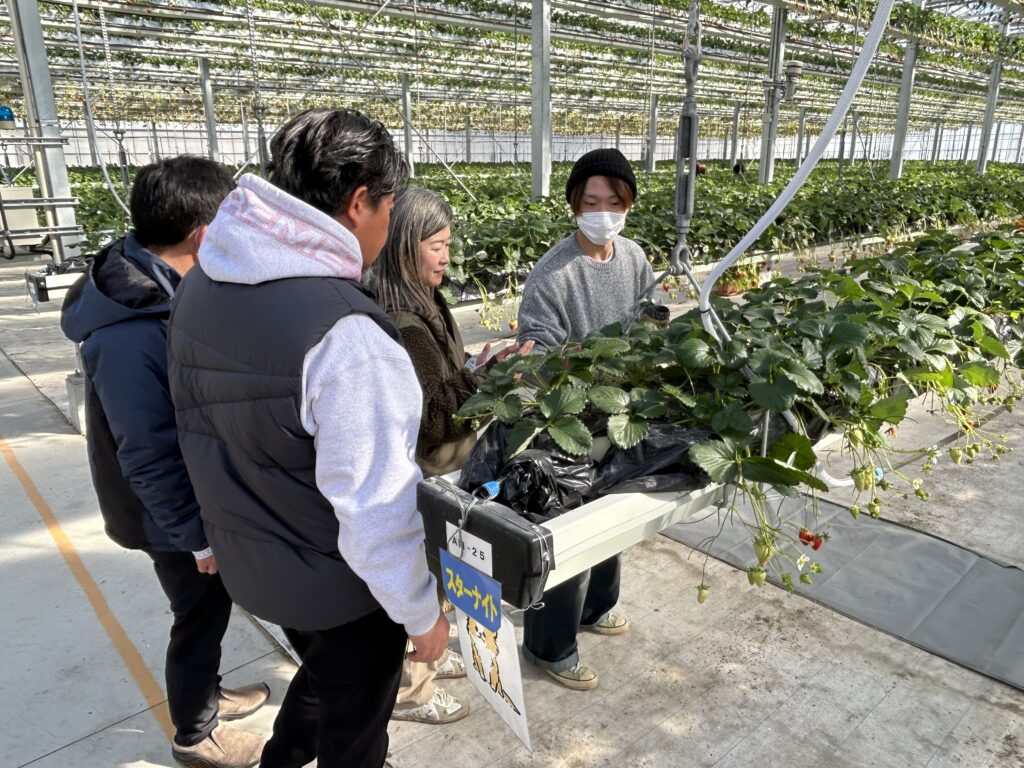 午後は、グランベリー大地さんでイチゴ狩りをした後、経営や栽培についてご説明をいただきました。